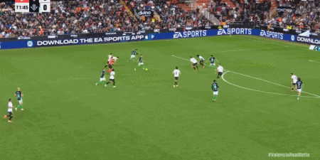 第82分钟,角球被顶到弧顶,里奥哈停球推射破门扳平比分,瓦伦西亚1-1